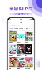 "IP库—收录包括卡通动漫、文化艺术、影视娱乐、名人明星、生活方式、企业品牌、体育运动、非营利机构、网络游戏、网文图书十大领域的IP,打造全中国最全的IP收录库;
