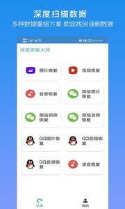 深度恢复大师自助恢复、恢复数据类型:视频、照片、音频、录音、语音、等。