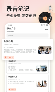 录音机具有专业录音、录音转文字、多语言转写、笔记备忘录、外部录音导入转文字等特色功能。是一款可以满足日常生活办公语音文字记录的实用工具,操作简单,转换迅速。