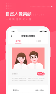 双人严格抠图,自动填充底色,智能裁剪像素尺寸,确保拍摄出合格可使用的结婚登记照。