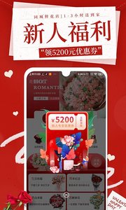 3、同城花店1-3小时送花到家,下载注册app就送5200元优惠券。